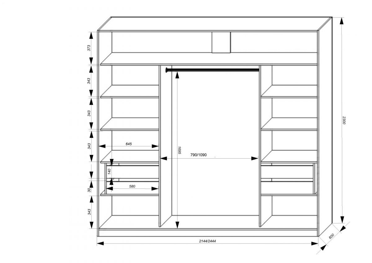 ВНИМАНИЕ: Ширина шкафа по верхним карнизам – 2250 мм !!!
